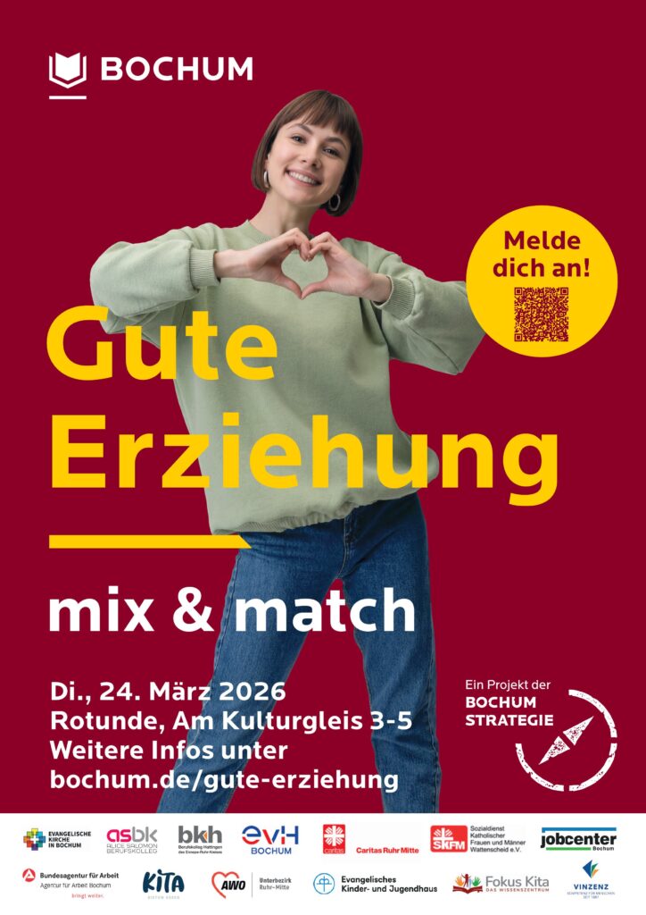 Kindertagesstätten spielen eine zentrale Rolle für Familien. Sie begleiten Kinder in einer wichtigen Entwicklungsphase, fördern soziale, sprachliche und motorische Fähigkeiten und ermöglichen vielen Eltern erst die Vereinbarkeit von Familie und Beruf. Gleichzeitig fehlt es vielerorts an pädagogischen Fachkräften. Um Menschen für die Arbeit in Kitas zu gewinnen und über Einstiegsmöglichkeiten zu informieren, lädt die Stadt Bochum zur Veranstaltung „mix & match“ ein.